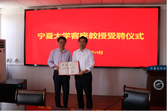 报告开始前,宁夏大学副校长李学斌为陈应龙教授颁发客座教授聘书,聘期为期3年。