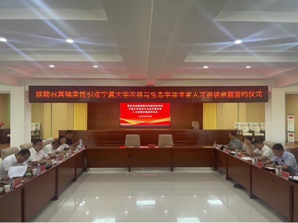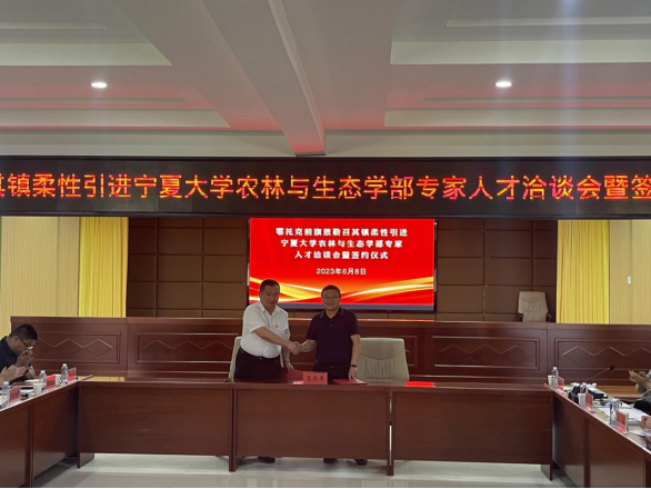 随后,在敖勒召其镇举行了柔性引进宁夏大学农林与生态学部专家人才工作洽谈会暨签约仪式。镇党委书记薛照森介绍了敖勒召其镇经济社会发展的基本情况,表达了对宁夏大学农林与生态学部专业人才的渴求,希望双方建立深远、长久、专业的合作,围绕全镇产业发展瓶颈,开展“项目化”共建合作,全面助推敖镇高质量发展。