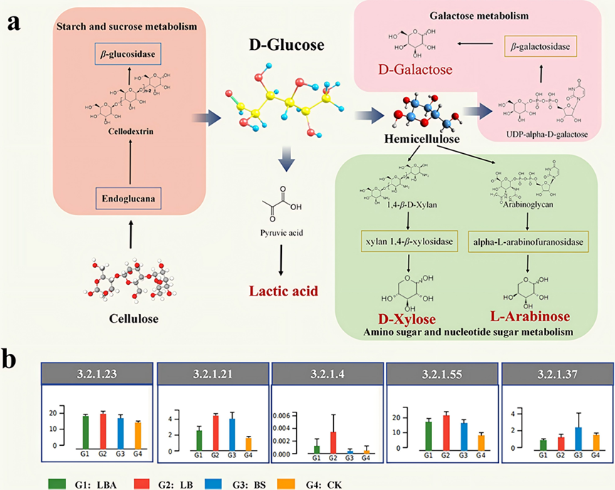 图4柠条固态发酵中木质纤维素降解路径示意图