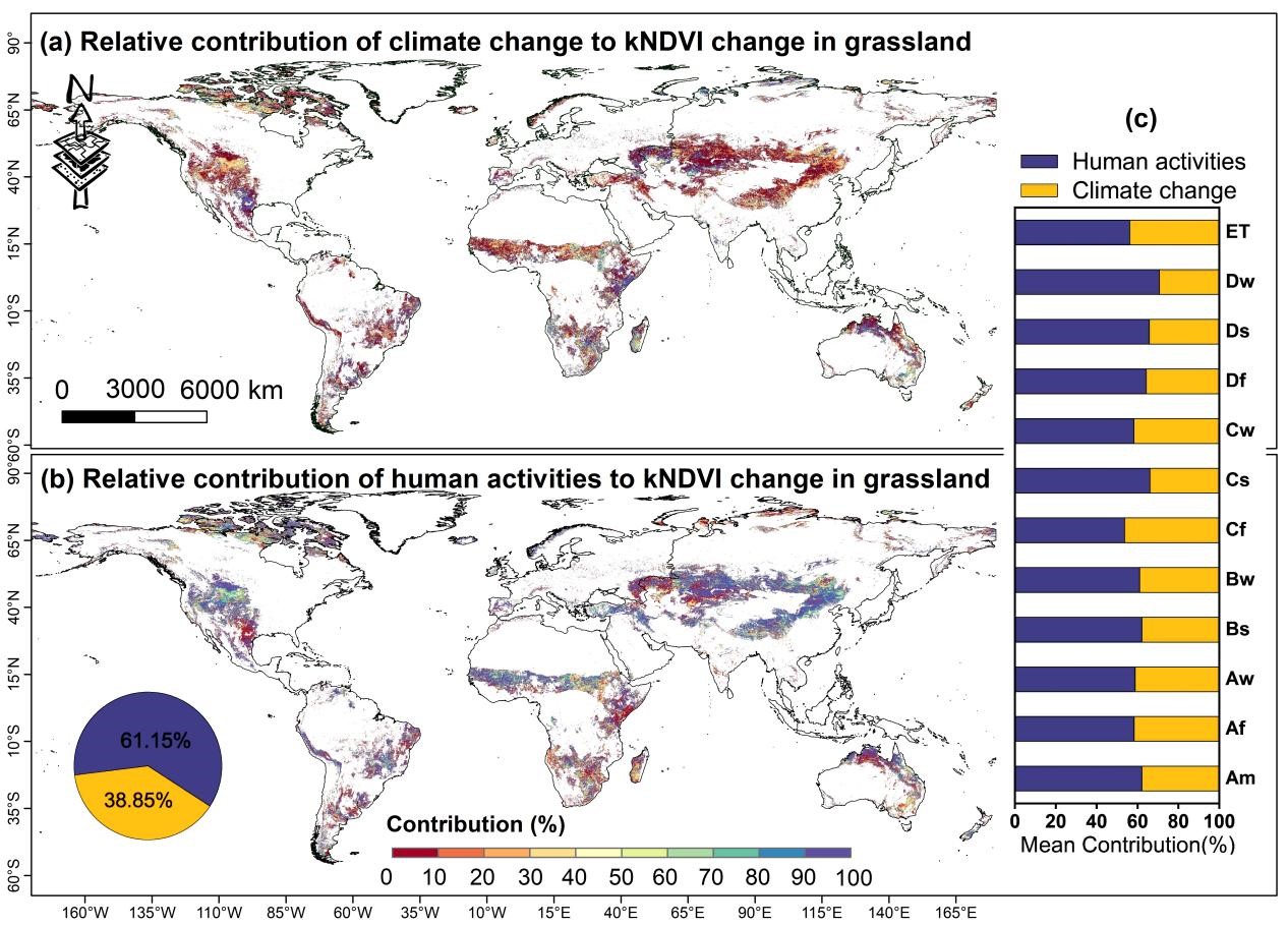 论文信息:Xuejuan Feng; Jia Tian; Jingjing Wu; Guowei Wu; Yi Ren; Caifeng He; Wei Bao; Tao Yu. Exploring the Spatio-temporal Distribution Characteristics and the Impacts of Climate Change and Human Activities on Global Grassland Based on kNDVI [J].Environmental Research, 2025, 279 (P2): 121884. DOI: //doi.org/10.1016/j.envres.2025.121884.