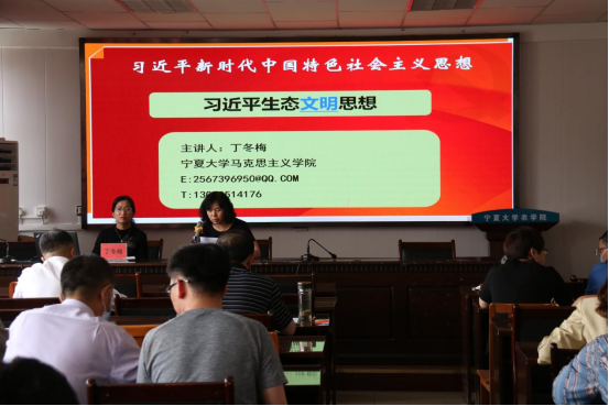 丁冬梅教授作了题为《习近平新时代中国特色社会主义思想——习近平生态文明思想》的专题党课,学部党委副书记虎建华主持会议。