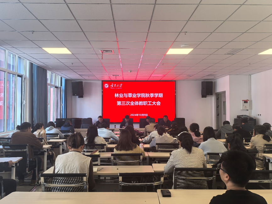 在新农科大楼204会议室召开了秋季学期第三次全体教职工大会。深入学习习近平总书记重要讲话以及自治区党委第十三届九次全会精神,总结本科教育教学预评估工作和国基金申报获批情况,并对香港六合彩资料论坛