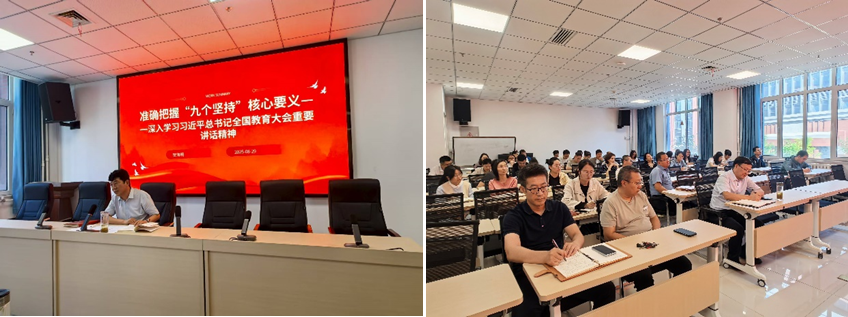 在政治理论学习及日常工作进行了部署安排,重点以《准确把握“九个坚持”核心要义——深入学习习近平总书记全国教育大会重要讲话精神》为题进行党课讲授。党课强调,党的十八大以来,我国教育事业之所以取得显著成就,根本就在于以“九个坚持”指导教育改革发展的实践,使教育事业中国特色更加鲜明,教育现代化加速推进。要求全体教师牢牢把握教育改革发展的“九个坚持”,不断增强贯彻落实“九个坚持”的自觉性和坚定性,要紧扣“为党育人 为国育才”的根本目标,强化实践教学环节,让学生在掌握专业技能的同时,筑牢理想信念之基。